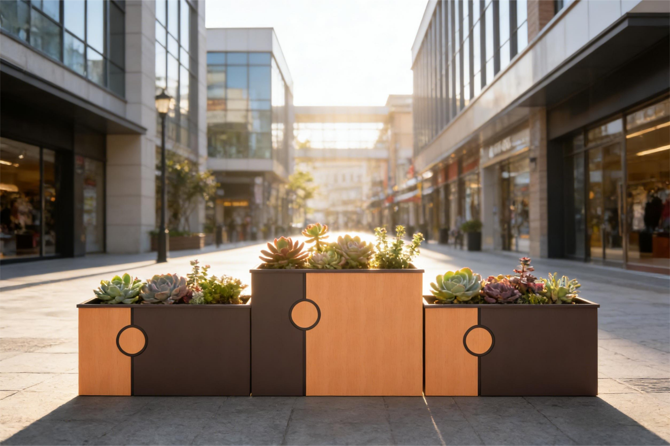 PVC相比较于防腐木,PVC材质更加耐用持久,不易褪色,且防火防潮。相对于金属材质,钣金、铝合金花箱,PVC材质,有一定的隔热效果,夏天对于植物有更好的防护作用。