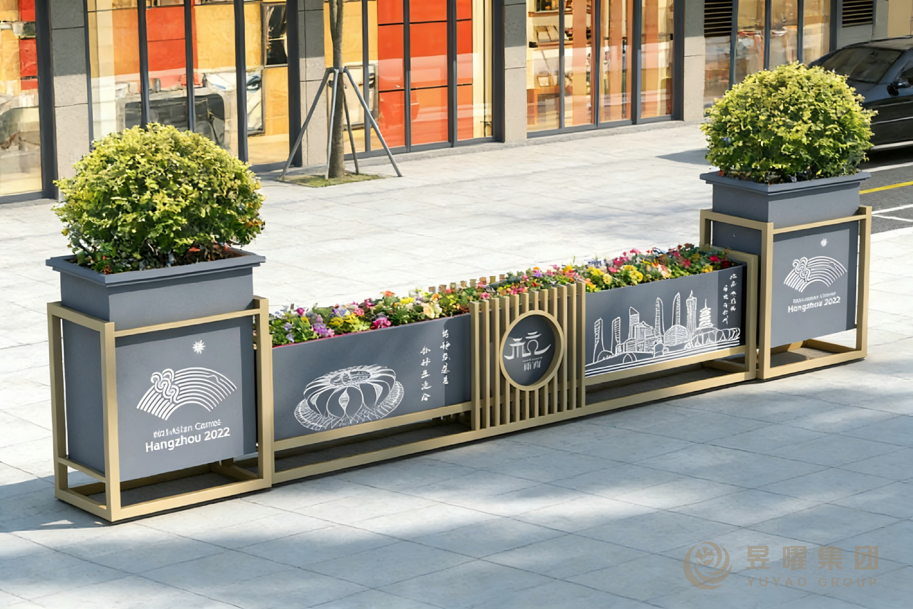 一、设计原则与功能定位空间划分与动线引导采用模块化铁艺花箱组合,通过L型、U型或长条形布局灵活划分行人通道、休憩区与商业外摆空间,底部万向轮设计便于快速调整···...