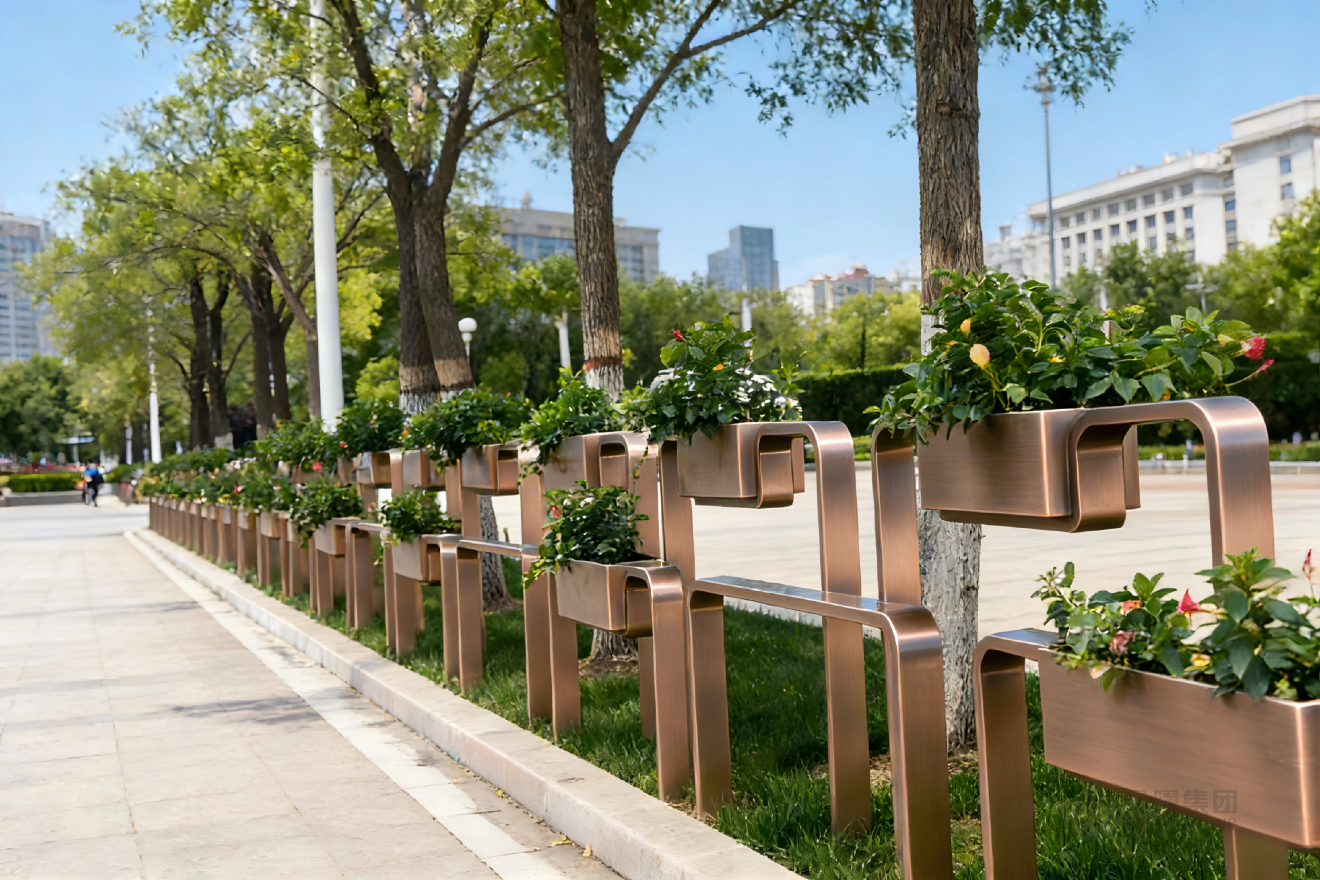 道路景观绿化一直是城市景观提升的重要内容。通常做法,在道路设计的时候,留出绿化带,种植花草,形成靓丽的风景线。然城市中很多原有的道路比较狭窄,没有绿化带。如何利用原有的道路空间,对城市道路进行景观绿化?艺术景观花箱护栏的出现便很好解决这一问题,就把景观花箱和交通护栏整合融为一体,既做到的交通隔离安全防护的作用,也提升了城市道路景观。