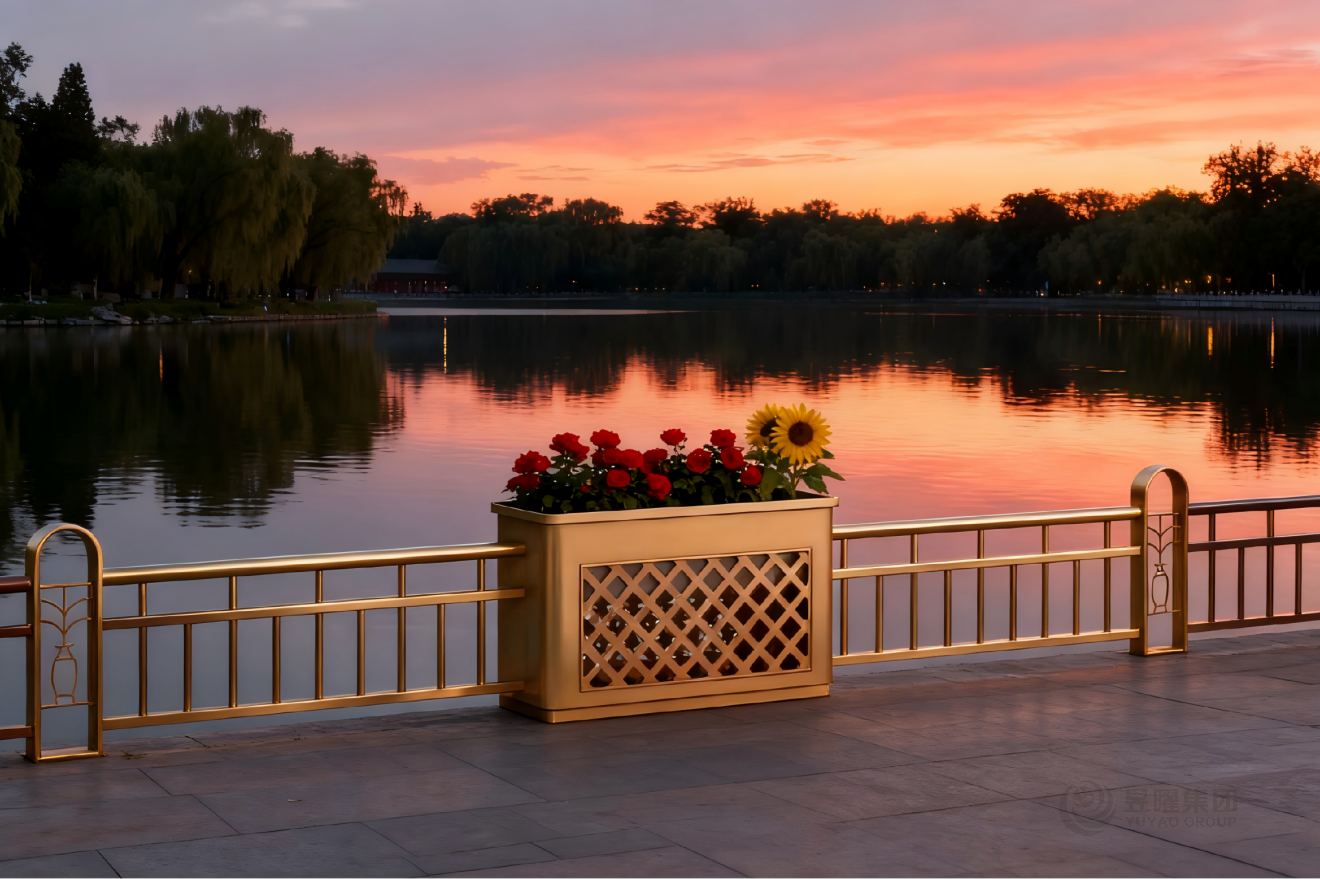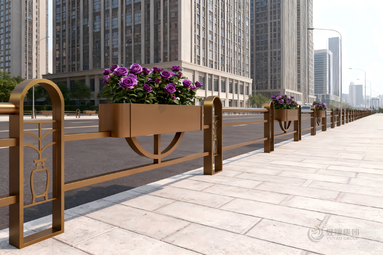 道路景观绿化一直是城市景观提升的重要内容。通常做法,在道路设计的时候,留出绿化带,种植花草,形成靓丽的风景线。然城市中很多原有的道路比较狭窄,没有绿化带。如何利用原有的道路空间,对城市道路进行景观绿化?艺术景观花箱护栏的出现便很好解决这一问题,就把景观花箱和交通护栏整合融为一体,既做到的交通隔离安全防护的作用,也提升了城市道路景观。