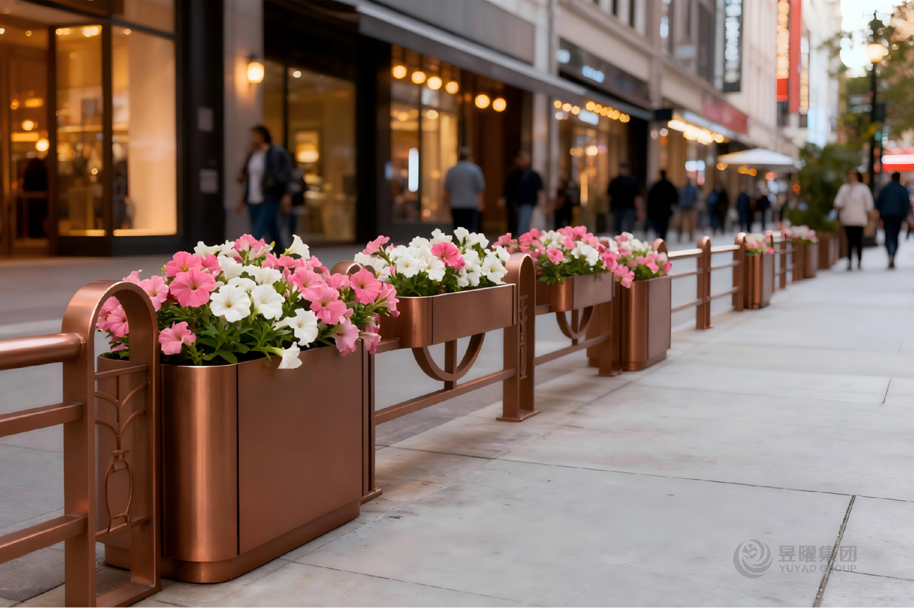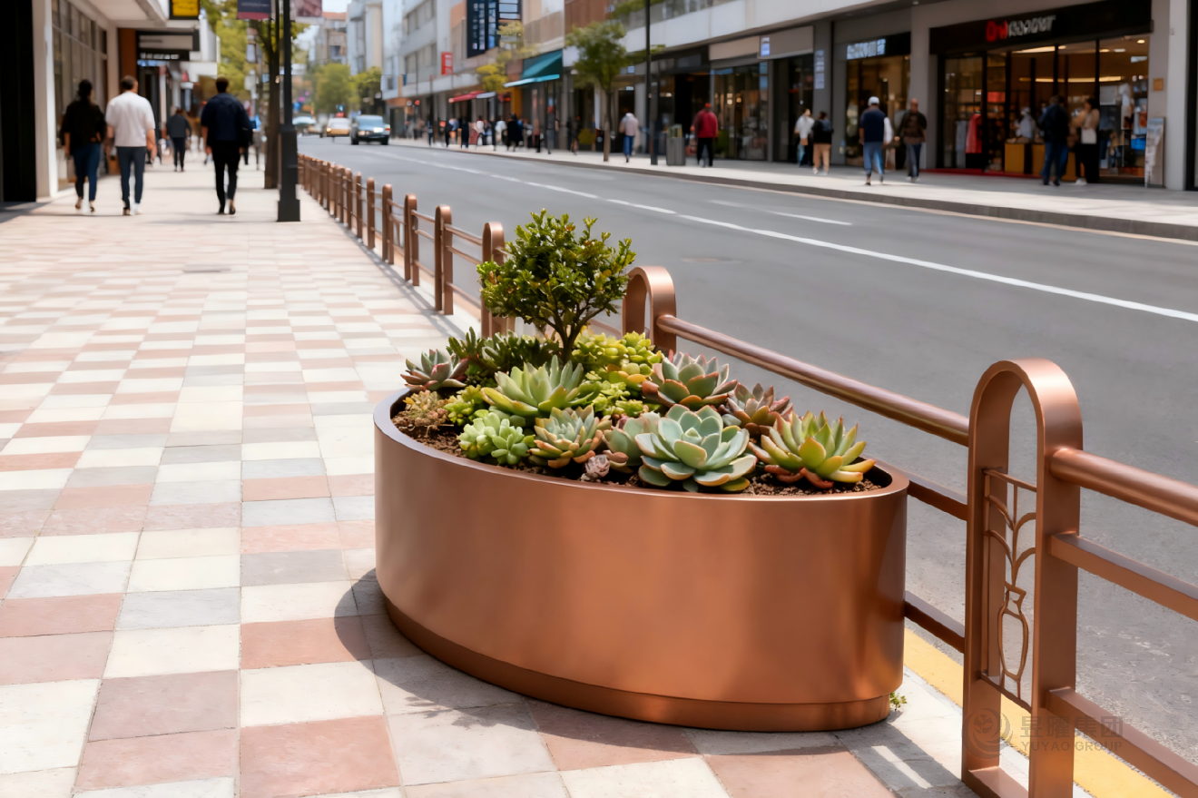 一、设计原则与功能定位空间划分与动线引导采用模块化铁艺花箱组合,通过L型、U型或长条形布局灵活划分行人通道、休憩区与商业外摆空间,底部万向轮设计便于快速调整···...
