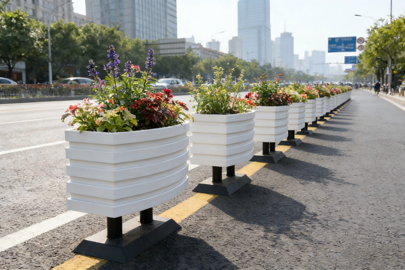 一、设计原则与功能定位空间划分与动线引导采用模块化铁艺花箱组合,通过L型、U型或长条形布局灵活划分行人通道、休憩区与商业外摆空间,底部万向轮设计便于快速调整···...
