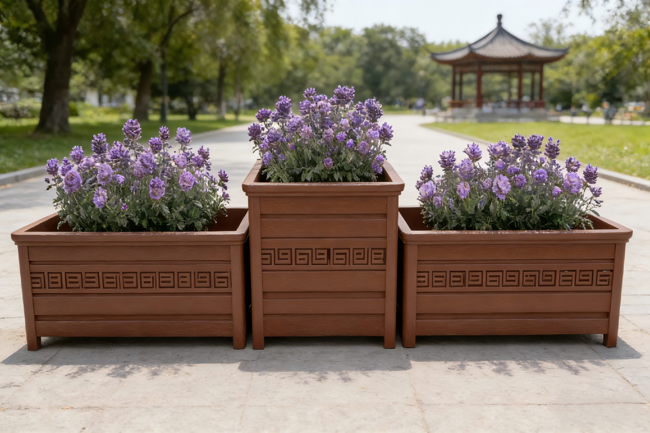 PVC相比较于防腐木,PVC材质更加耐用持久,不易褪色,且防火防潮。相对于金属材质,钣金、铝合金花箱,PVC材质,有一定的隔热效果,夏天对于植物有更好的防护作用。